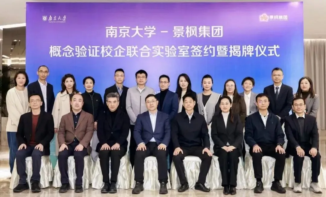 2026年1月26日下午,南京大学与江苏景枫投资控股集团有限公司共建“概念验证校企联合实验室”签约揭牌仪式在景枫中心举行。南京大学党委常委、副校长、中国科学院院士郑海荣,江宁经济技术开发区管委会主任王爱军,江苏景枫投资控股集团有限公司董事长张景春等出席活动。