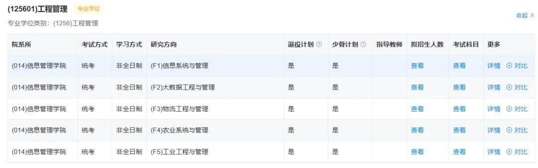 工程管理 | 信息管理学院 | 2年,7.5万元 | 周末班 |