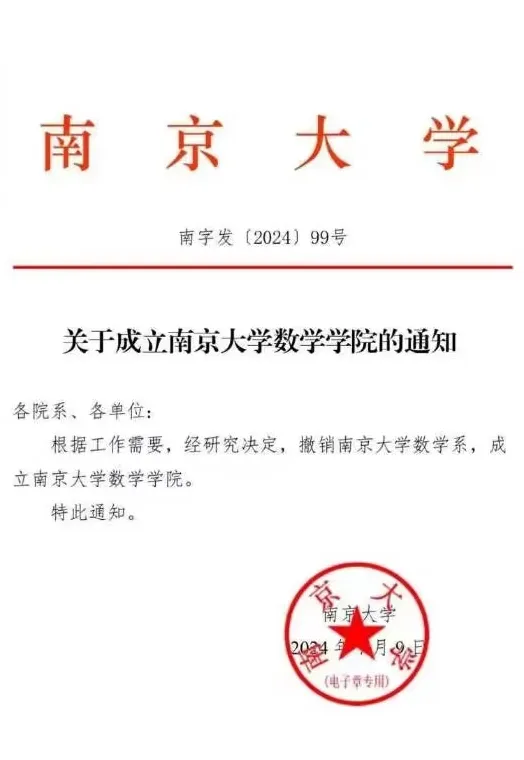 除本次院系调整之外,南京大学在2024年7月9日也曾发布学校文件通知:撤销南京大学计算机科学与技术系、南京大学数学系、南京大学哲学系(宗教学系),同时成立南京大学计算机学院、南京大学数学学院、南京大学哲学学院。至此,南大“没系啦!”,全校均为“学院派”: