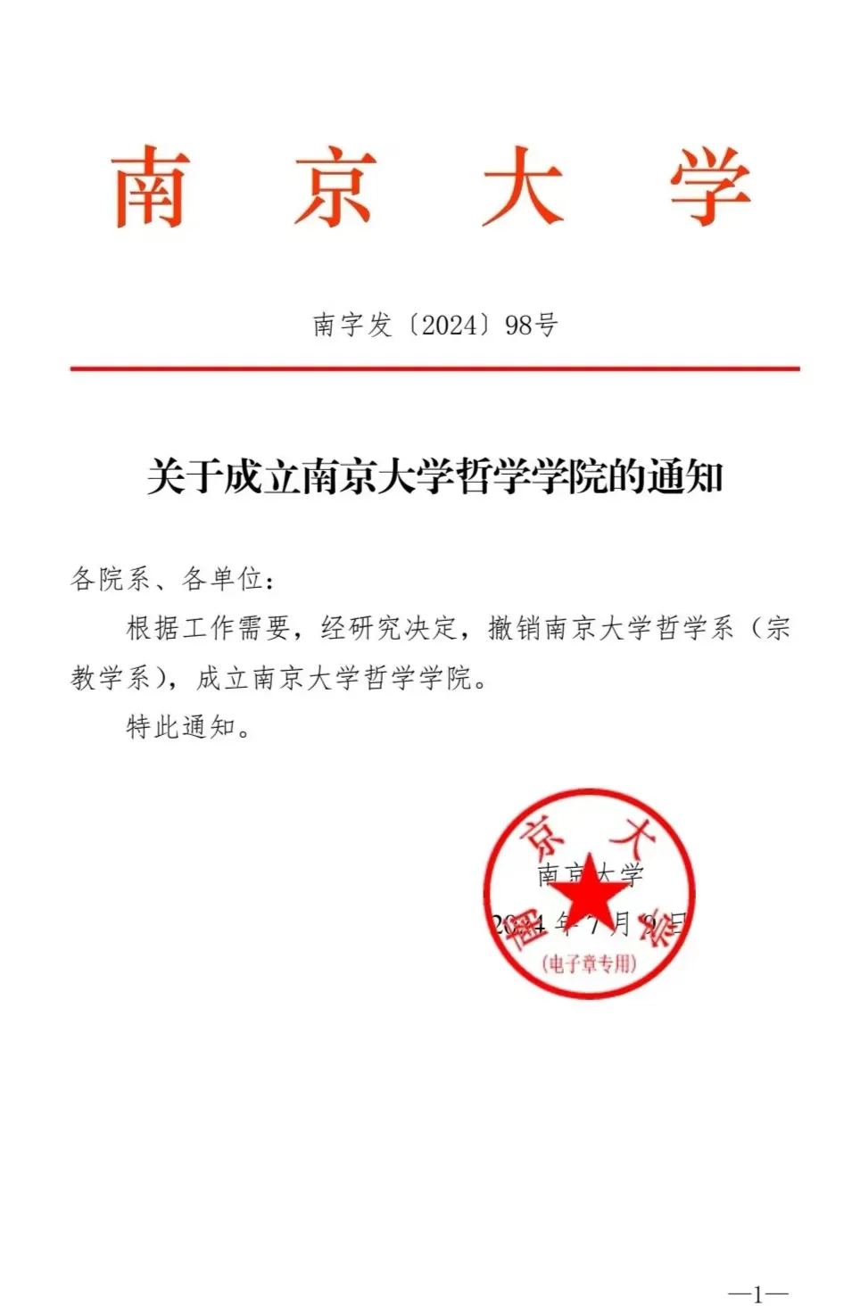 *南京大学撤销哲学系(宗教学系),成立哲学学院