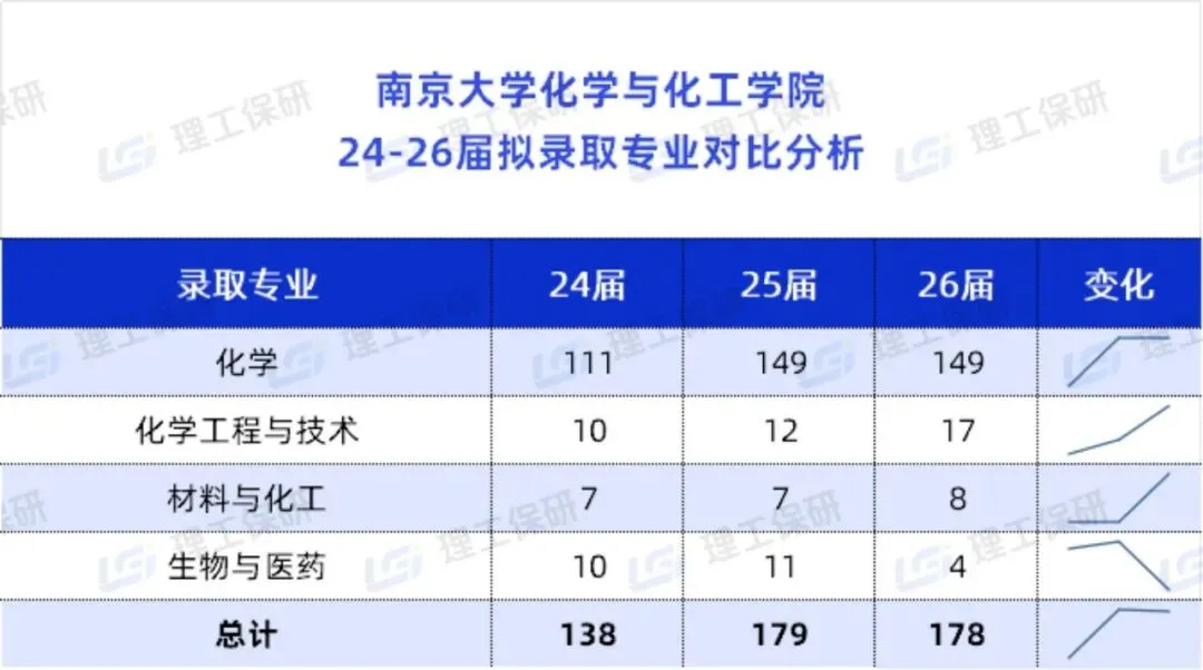 这一增长主要源于化学这一核心基础学科的大幅扩招(111人→149人);化学工程与技术专业稳步扩招,从10人增长至17人;而生物与医药专业则在26届出现明显收缩,从11人减至4人。