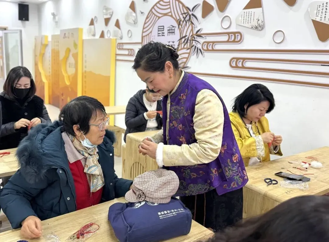 这种“培训+生产+销售”的模式,在多个工坊得到成功实践。徐州贯男文化传播有限公司创始人郭贯男,作为徐州香包市级非遗代表性传承人,通过统一培训、统购统销,帮助众多困难妇女在家门口实现创收创业。郭贯男介绍:“学员中,已有6人被评为非遗传承人,50余人走进校园担任非遗老师,224名学员在家从事手工加工。”