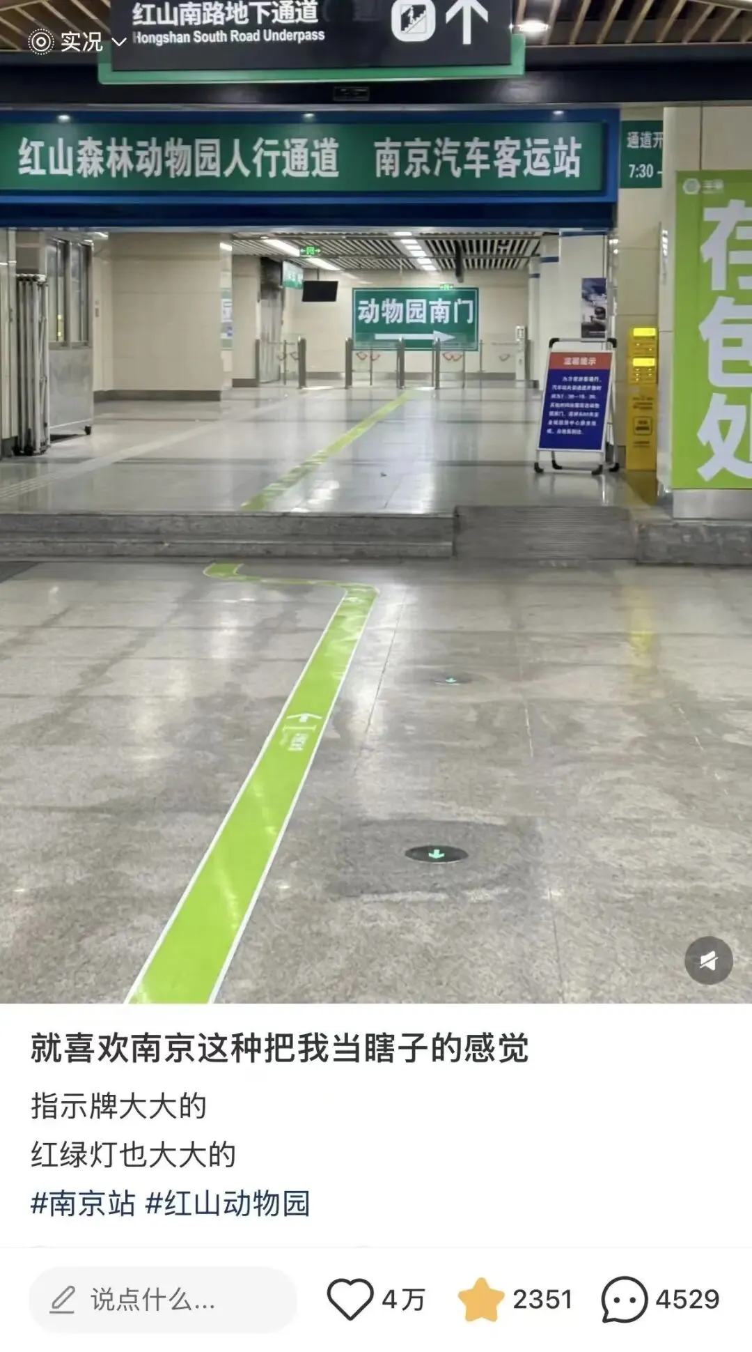 “特别特别喜欢南京,是近视人的天堂”“南京所有的地铁站指示做的非常好”“知道为啥叫‘大南京’了吧,都往大了整”