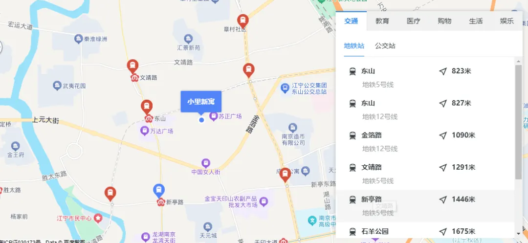 小里新寓位于江宁东山,靠近地铁5号线东山站,距离万达广场也仅有900米左右,周边生活方便