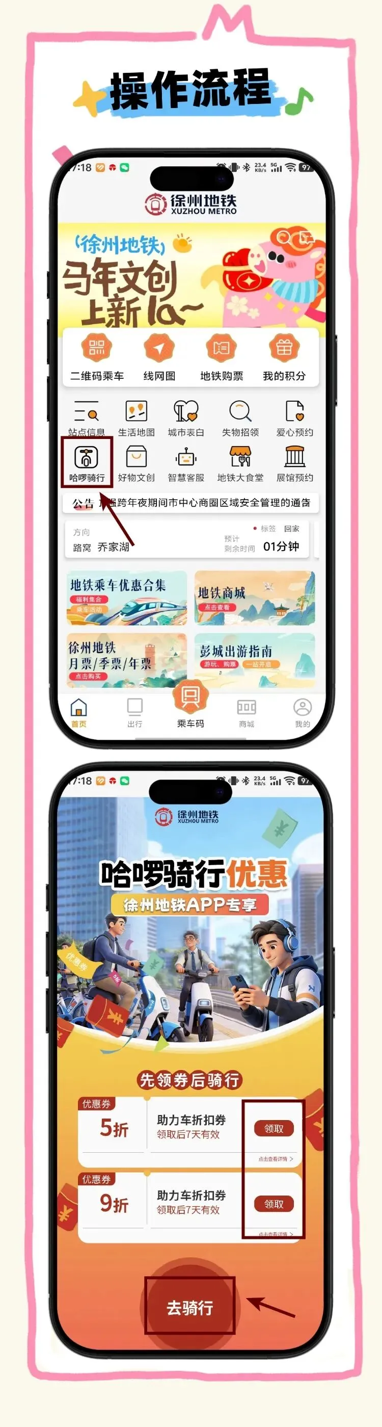 徐州地铁APP*哈啰骑行上线!扫码解锁“地铁+助力车”无缝出行