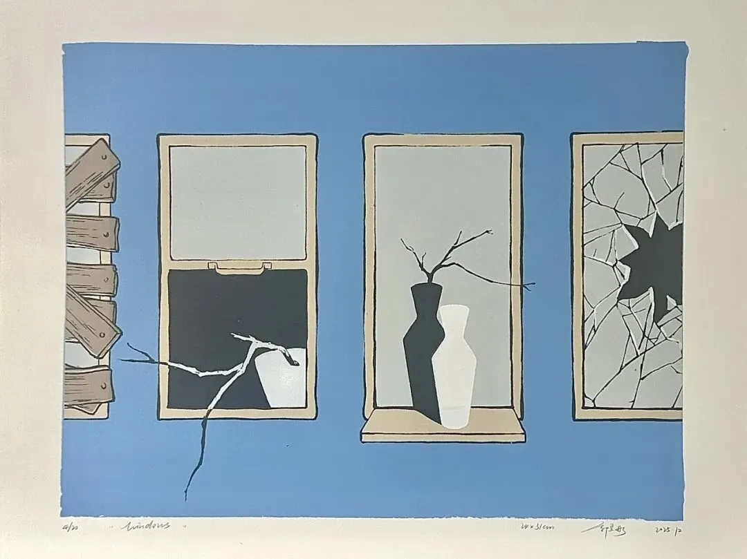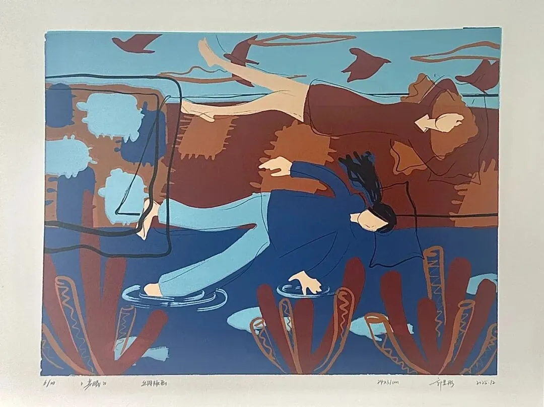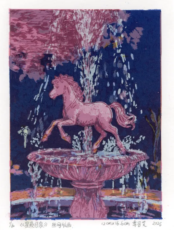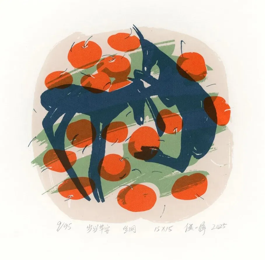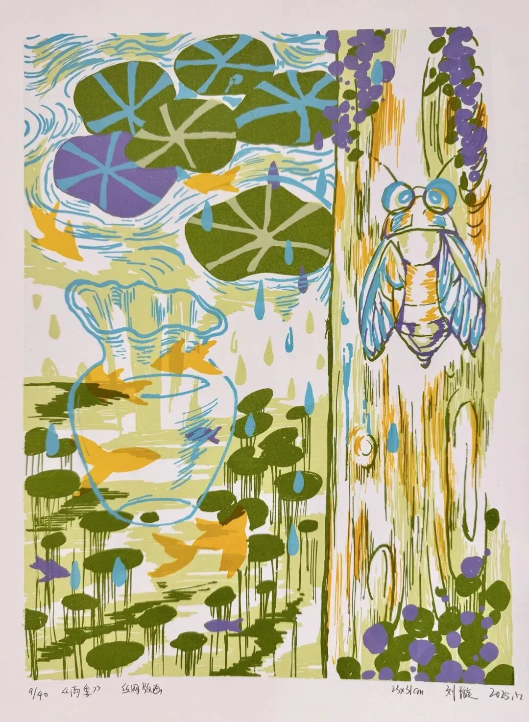 丝网版画,是一种通过网版漏印图像的版画方式。颜料从网孔中被刮压到纸张或其他材质上,一层一色,层层叠加,留下清晰而有力的画面。
