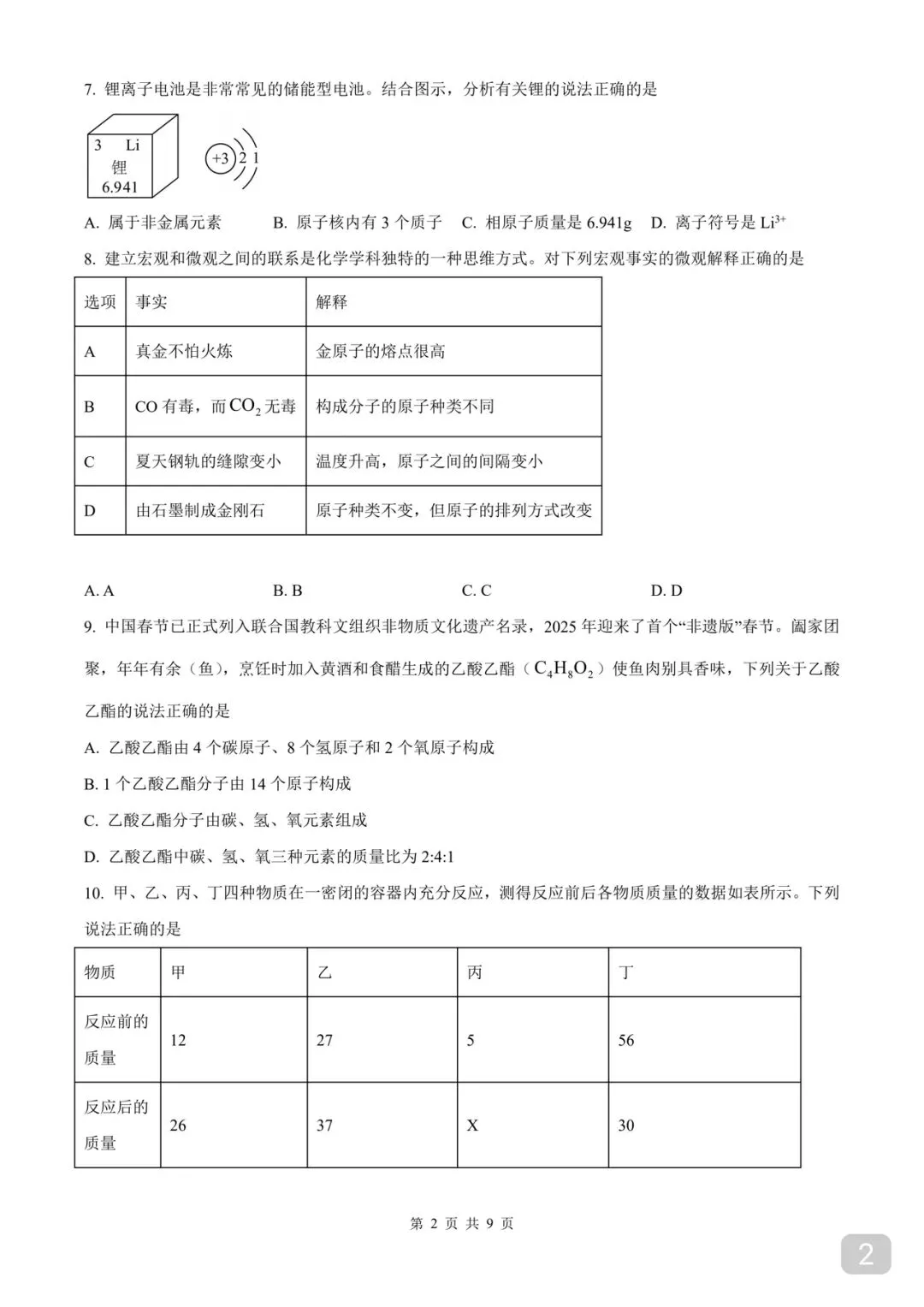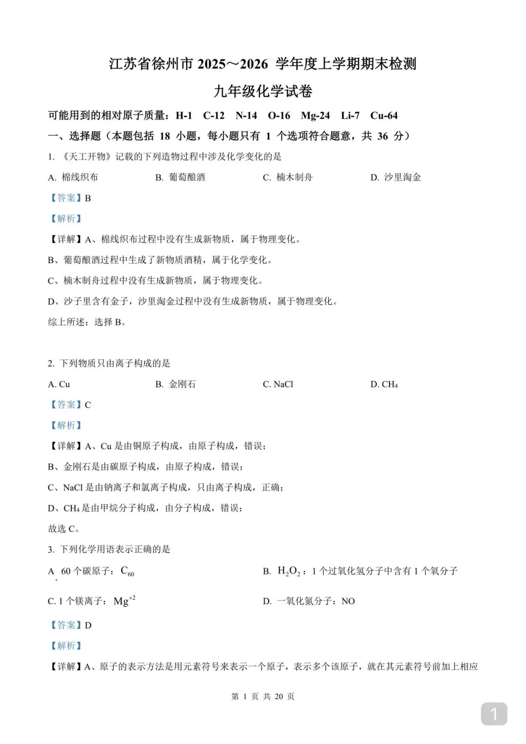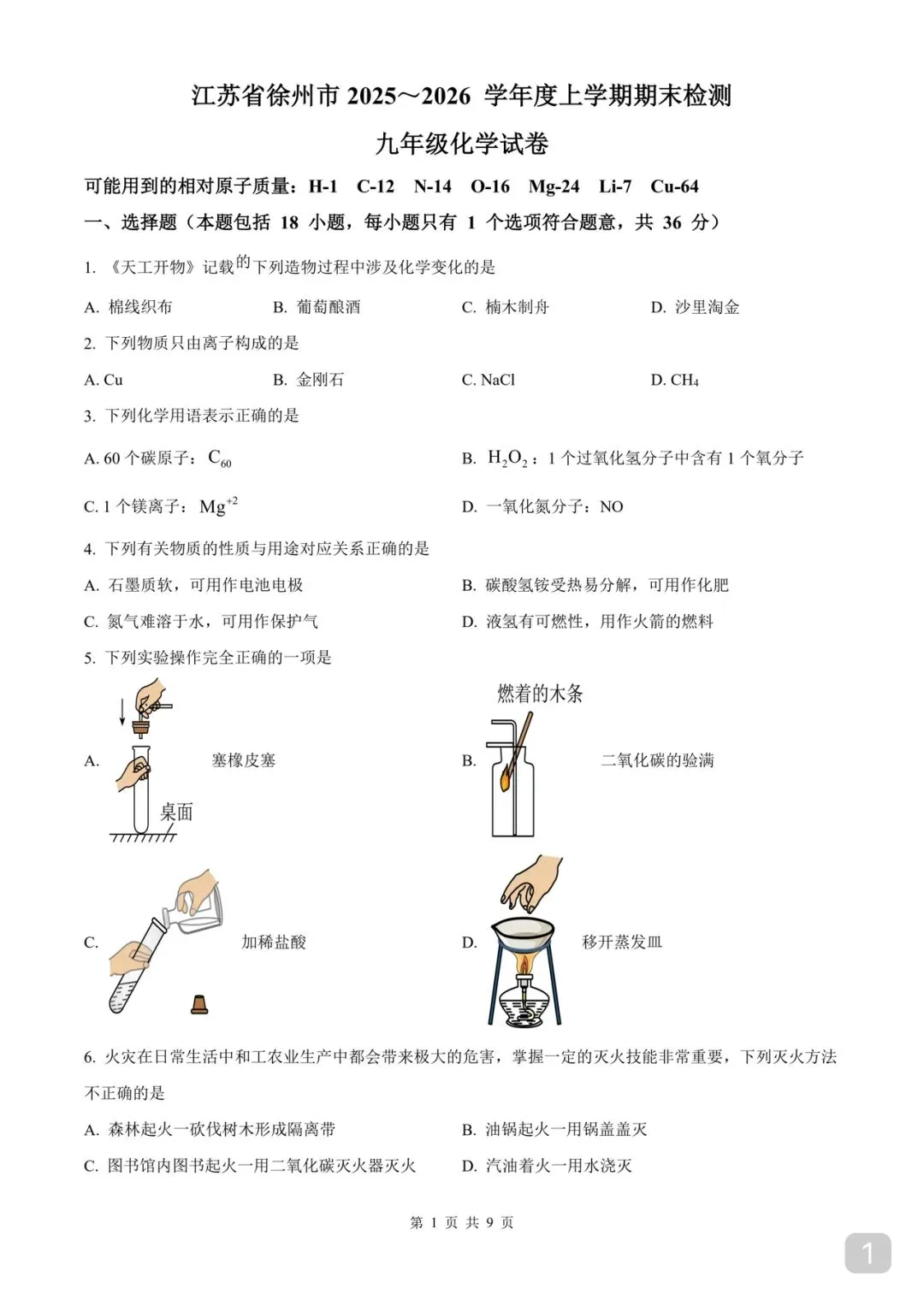 徐州市 2025-2026 学年九年级化学期末最后一卷