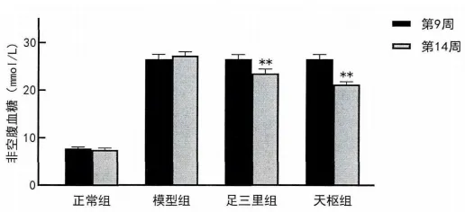 图1:电针治疗前后非空腹血糖的变化(n=8)