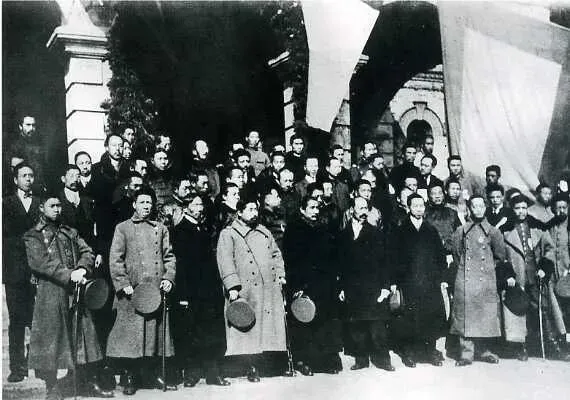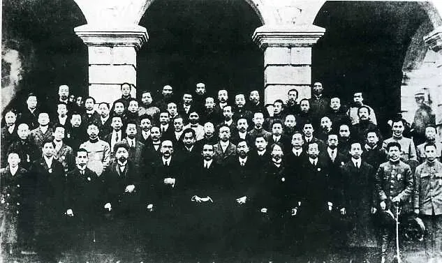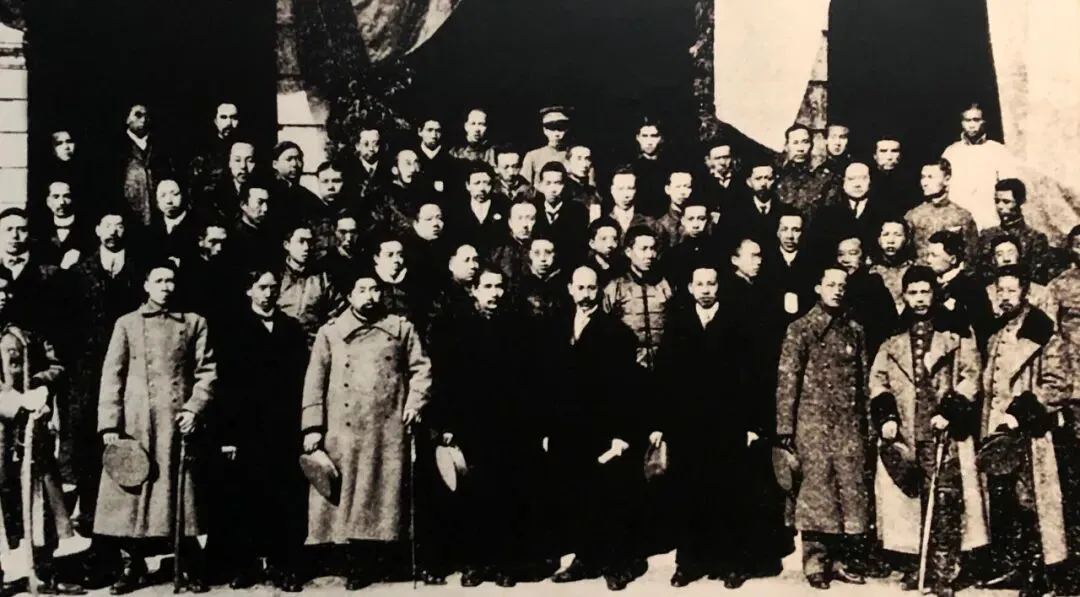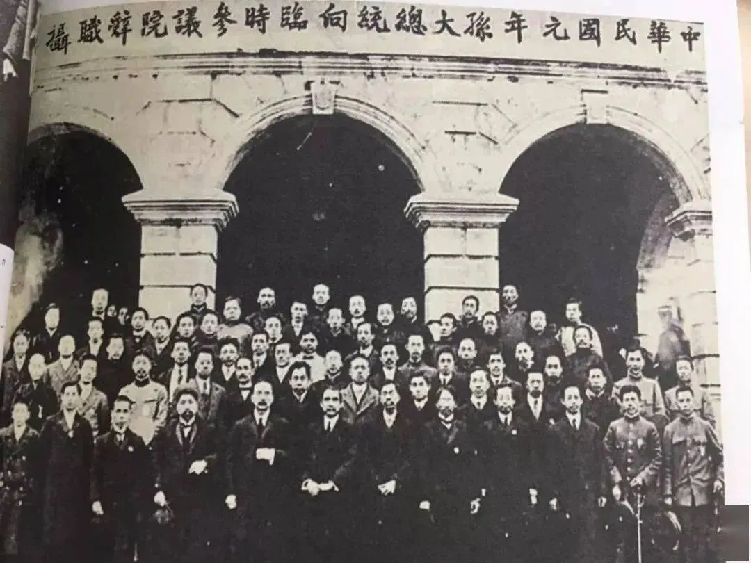 1912年1月28日,南京临时参设议院成立。孙中山、黄兴出席成立会。图为与会者合影。