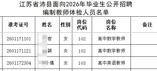 根据《江苏省沛县面向2026年毕业生公开招聘编制教师公告》要求,现将面向2026年毕业生公开招聘编制教师体检通知如下: