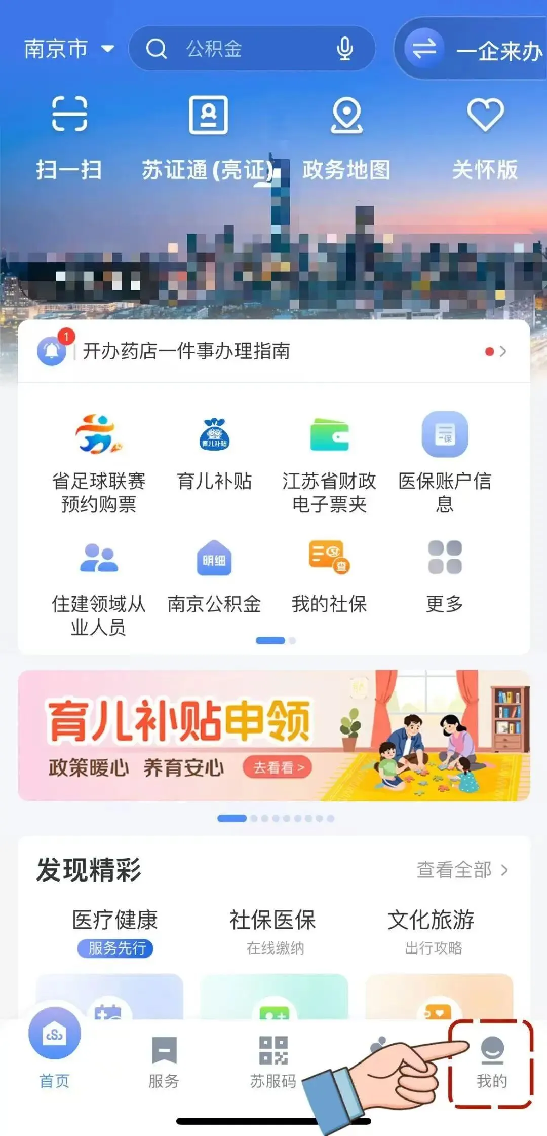 ①打开“苏服办”APP,在“我的”页面找到电子社保卡。