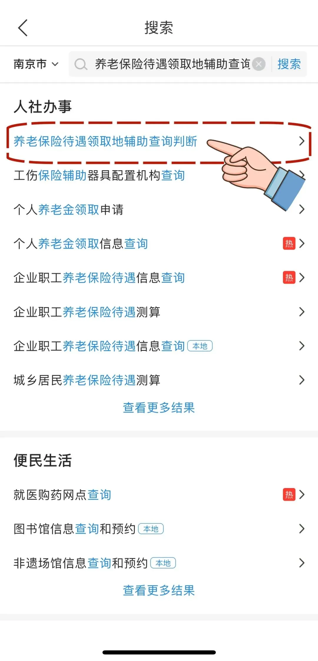 ②在电子社保卡页面,搜索“养老保险待遇领取地辅助查询判断”,即可进入相关服务页面。