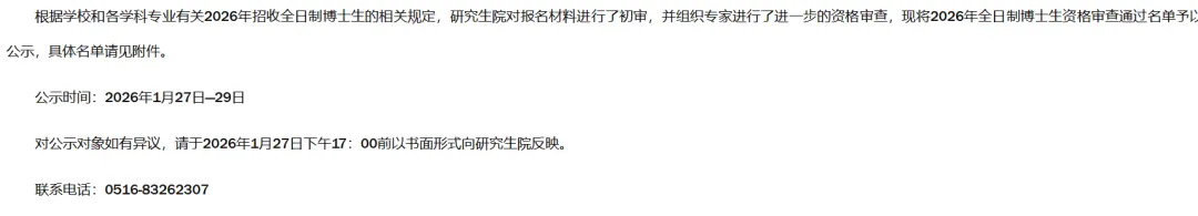 >徐州医科大学2026年全日制博士生资格审查通过名单