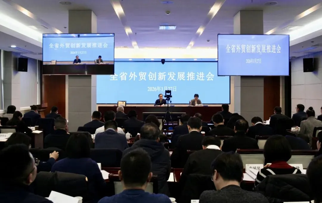 1月27日下午,全省外贸创新发展推进会在南京召开。会议深入落实全国商务工作会议、省委十四届十次全会、省委经济工作会议等要求,按照全省商务工作会议安排,统筹推动外贸“五新”工作,开展新业态专题培训。省商务厅党组书记、厅长司勇出席会议并就做好“五新”工作进行部署。苏州、南通、淮安市商务局围绕2026年外贸重点工作交流发言。全省商务系统、省稳外贸专班有关成员单位、外贸及跨境电商企业近2000人线上线下参训。