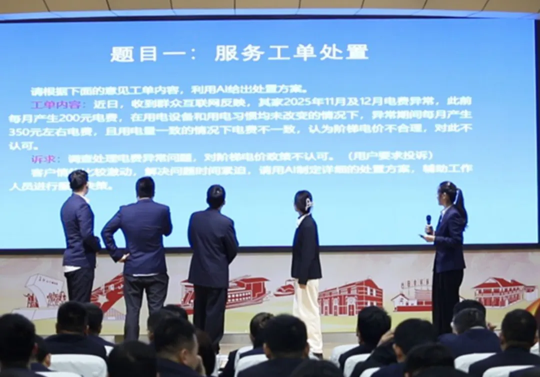 本次“丰羽·AI创效”活动创新采用“培训+测试+应用”三位一体形式,既实现了理论知识的有效传递,又强化了实战应用能力,在实战演练环节将活动氛围推向高潮。通过AI抽签分组的创新形式,现场随机抽取观众围绕“AI辅助处置突发事件”“数据分析”及“新闻稿件生成”三个实务场景开展互动实操。青年员工们积极投身实践,在与AI的实时互动中灵活运用所学技巧,精准提炼需求、优化提问方式,不仅高效完成了既定任务,更在实操中深化了对AI工具属性的理解。