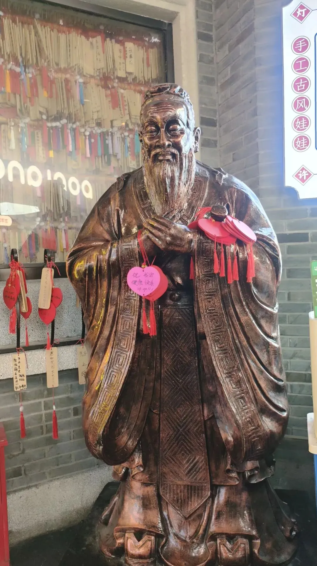 青石板路浸着秦淮水汽,夫子庙的飞檐翘角在暖阳下泛着温润光泽。棂星门内,孔夫子塑像庄严肃穆,殿宇间香火袅袅,墨香与桂香交织弥漫。我在这里也许下愿望。