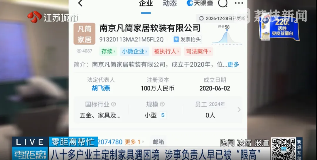 随后,零距离记者前往商场运营部找到了负责人张经理。张经理表示,“凡简家居”进场时,和商场签订合同的主体是南京凡简家居软装有限公司,但门店在经营过程中,却以注册在秦淮区的南京适可居家居有限公司的名义和消费者签订合同,且迟迟不兑现合同约定,目前商场已经责令该门店停业整顿,并一直在积极帮助业主沟通。但张经理同时表示,由于商场没有权力对商户进行资金强制监管,所以对于“凡简家居”的违约行为,商场也没有强制手段要求其履行合同或者为业主退款。
