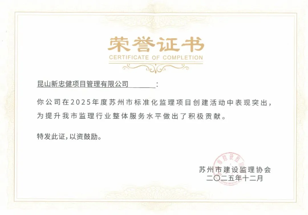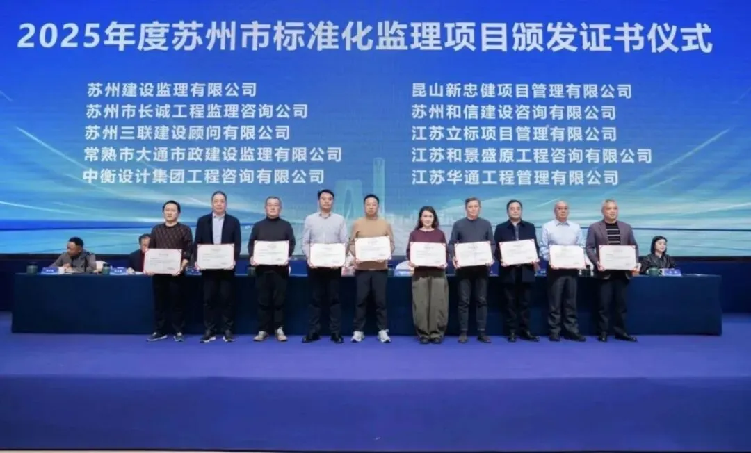 会议期间,苏州市监理协会为2025年度“苏州市标准化监理项目”的代表企业颁发了荣誉证书。我司凭借在标准化、规范化监理实践中的突出表现,顺利获此殊荣,充分彰显了公司在工程监理领域的专业实力与服务水准。