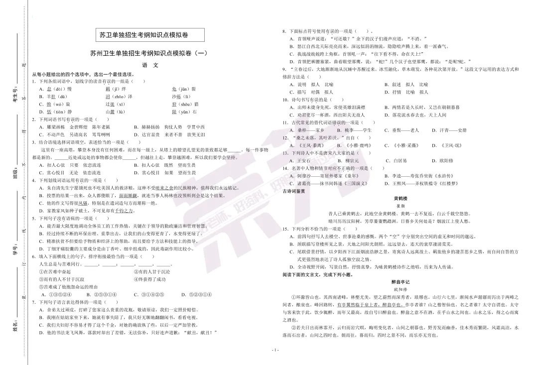 >【考生必看】苏州卫生25年真题