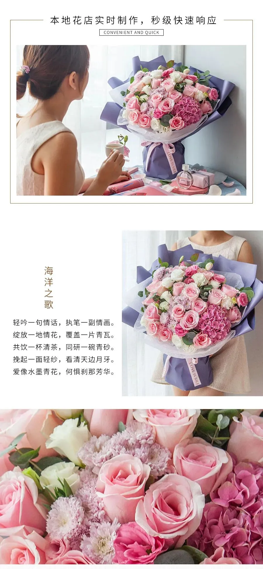 我们始终坚信,品质是企业的生命线。为了确保每一束送到客户手中的鲜花都新鲜、美丽,我们从花材的采购源头开始严格把关。我们与国内外优质的鲜花供应商建立了长期稳定的合作关系,只选用当季最新鲜、品质最好的花材。每一朵花在进入花店之前,都要经过专业人员的精心挑选,确保花瓣饱满、色泽鲜艳、无病虫害。
