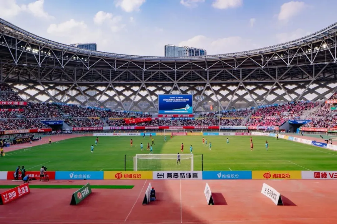 2025年6月1日,“苏超”第三轮,徐州的主场临时更换了容纳量更大的奥体中心,超过2.2万名观众涌入赛场,
