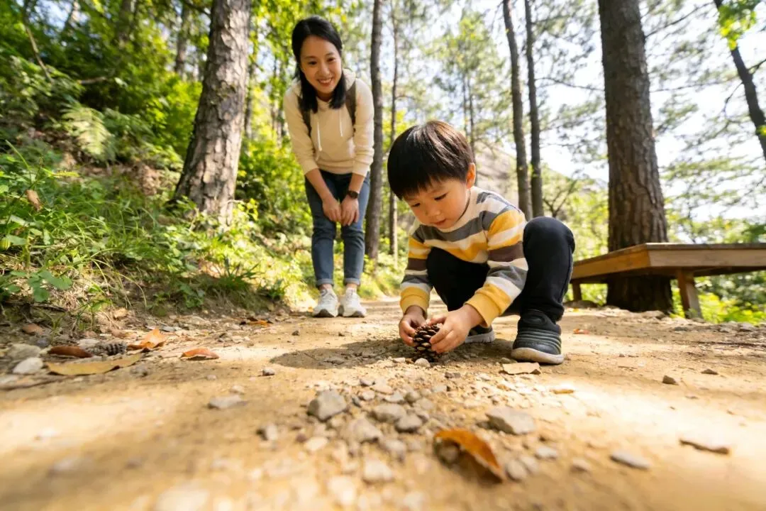 乐乐6岁时,我第一次试着让他自己走登山步道,不再时刻牵着他的手。一开始我特别紧张,总怕他摔倒,忍不住想上前扶他。可慢慢发现,乐乐能自己避开脚下的小石子,能在陡坡处放慢脚步,甚至能在我累的时候,拉着我的手说“妈妈加油”。