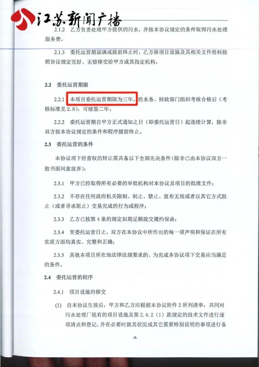 (合同约定委托运营期限为3年)