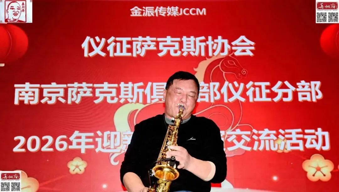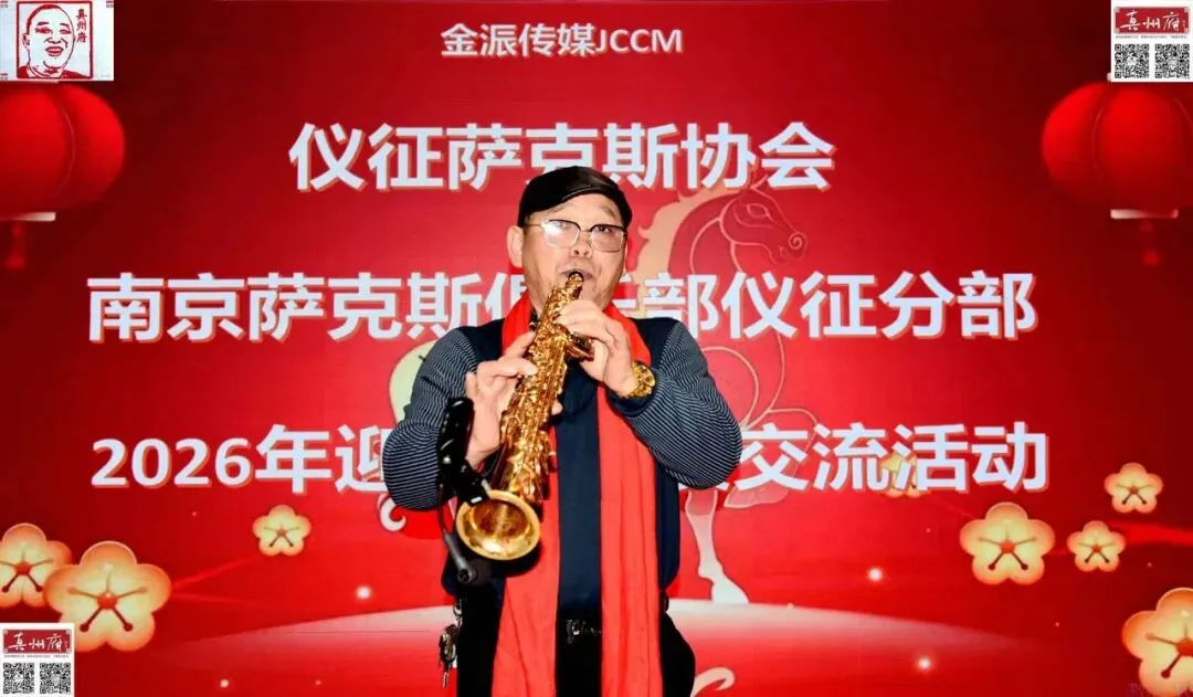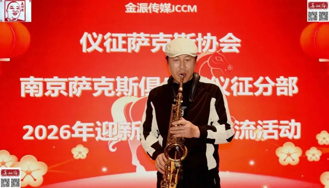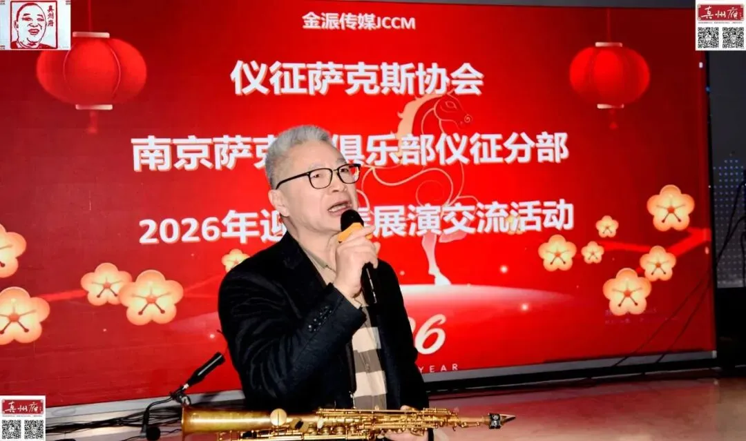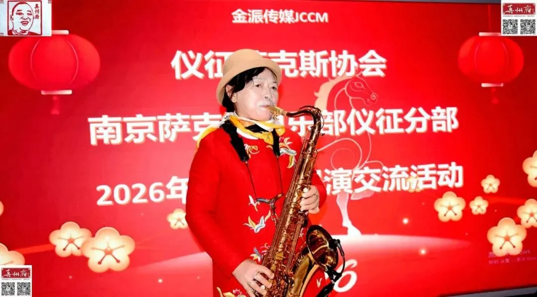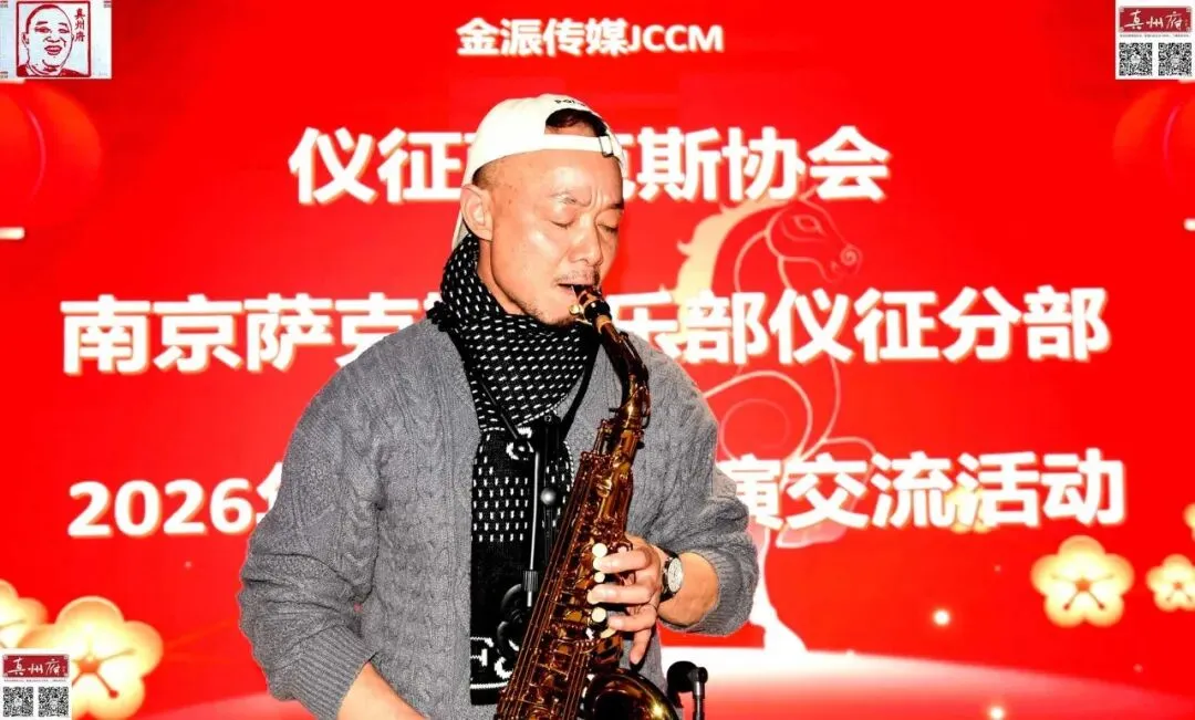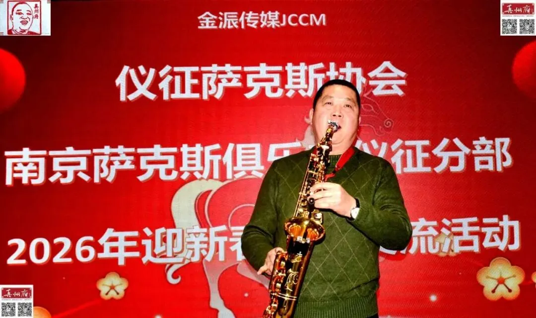 扬州真州府和仪征大码头首席摄影师周晓明2026年1月28日从仪征化纤生活区发回现场视频和图片新闻报道:2026年1月28日下午,仪征市仪化生活区顺水棣一楼宴会大厅,金浱传媒JCCM组织的仪征萨克斯协会、南京萨克斯俱乐部仪征分部2026年迎新春展演交流活动如期举行,来自南京、扬州、泰州、兴化、江宁等地萨克斯演奏高手云集仪征,进行了一场高水准萨克斯表演展示和交流。原南京军区前线歌舞团著名萨克斯乐手顾长城应邀参加展演交流。仪征著名主持人赵庆奎主持整场活动。