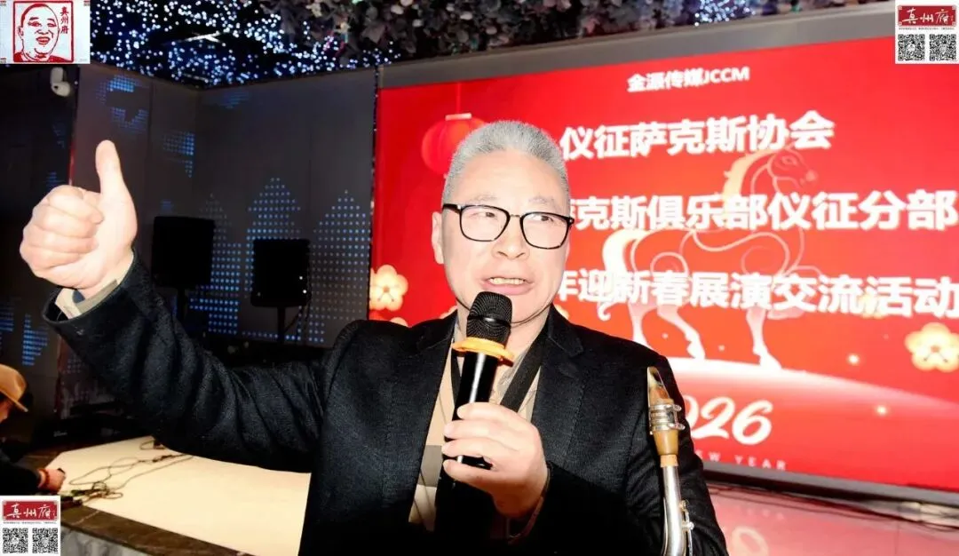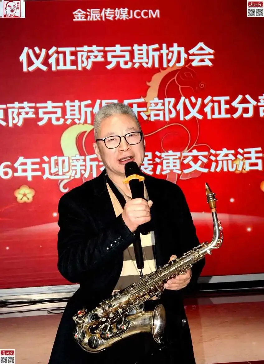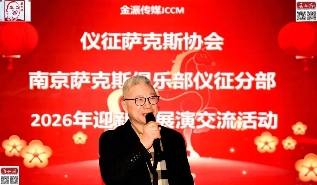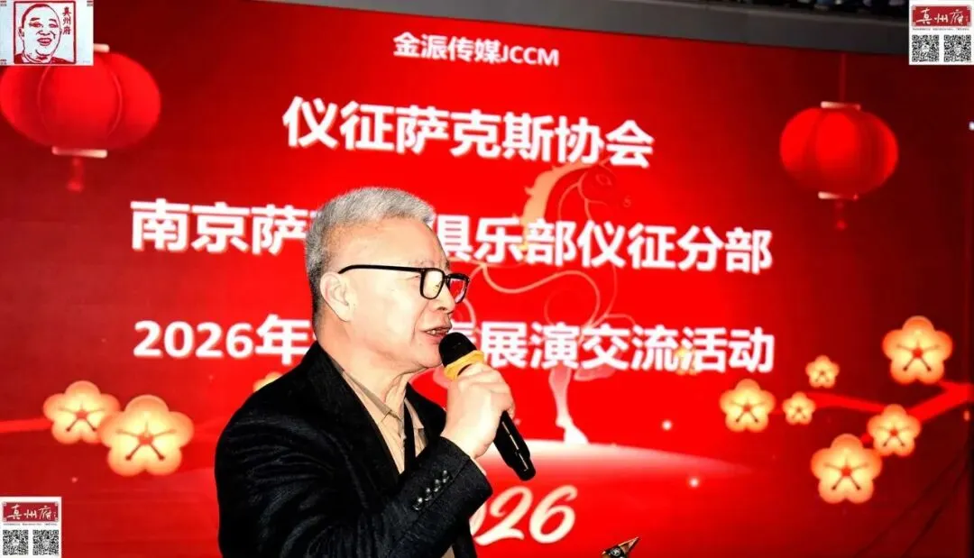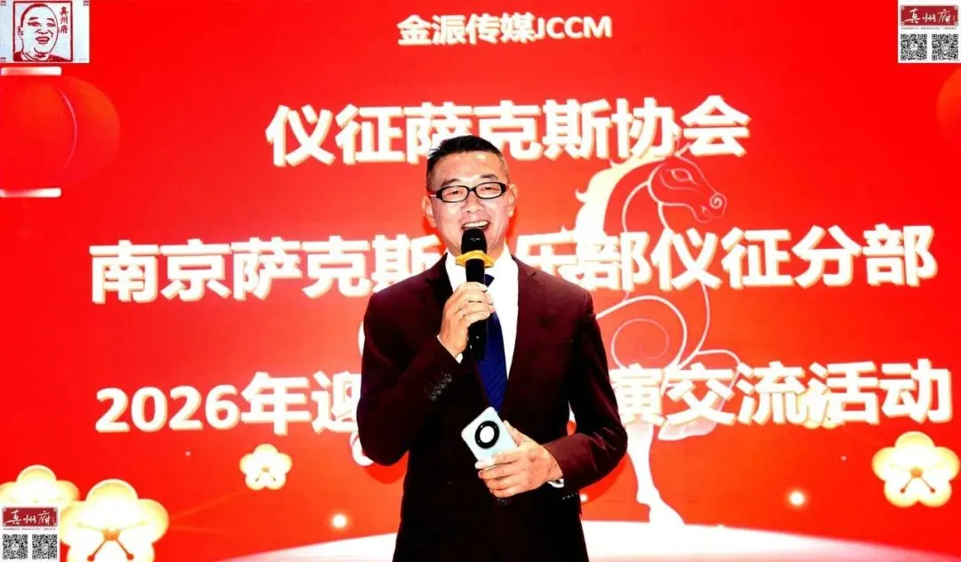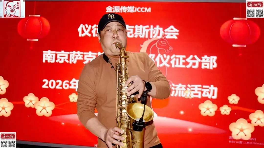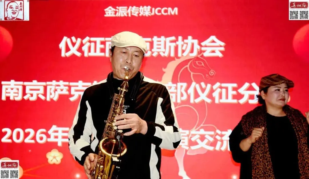 扬州真州府和仪征大码头首席摄影师周晓明2026年1月28日从仪征化纤生活区发回现场视频和图片新闻报道:2026年1月28日下午,仪征市仪化生活区顺水棣一楼宴会大厅,金浱传媒JCCM组织的仪征萨克斯协会、南京萨克斯俱乐部仪征分部2026年迎新春展演交流活动如期举行,来自南京、扬州、泰州、兴化、江宁等地萨克斯演奏高手云集仪征,进行了一场高水准萨克斯表演展示和交流。原南京军区前线歌舞团著名萨克斯乐手顾长城应邀参加展演交流。仪征著名主持人赵庆奎主持整场活动。