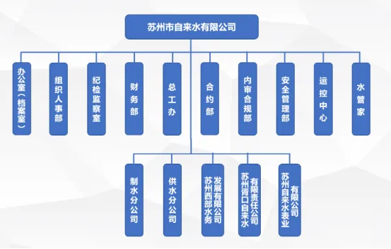 制水分公司隶属于苏州市自来水有限公司,位于浒关新区文昌路9号,下设生产运行科、技术保障科、综合管理科三个部门,下辖三个生产车间(白洋湾水厂、相城水厂、胥江水厂),管理范围包括水源地、取水泵站、水厂和二次供水泵房。