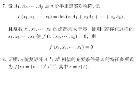 设 是实数域 上的 维线性空间, 是 上的线性变换. (1) 证明: 如果 是奇数, 则 有 1 维不变子空间. (2) 证明: 如果 没有 1 维不变子空间, 那么 必有 2 维不变子空间.