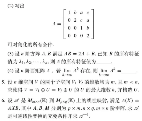 (1) 证明: 实反对称矩阵的特征值只能是 0 或纯虚数. (2) 设 , 子空间 , 求 的维数及一组基.