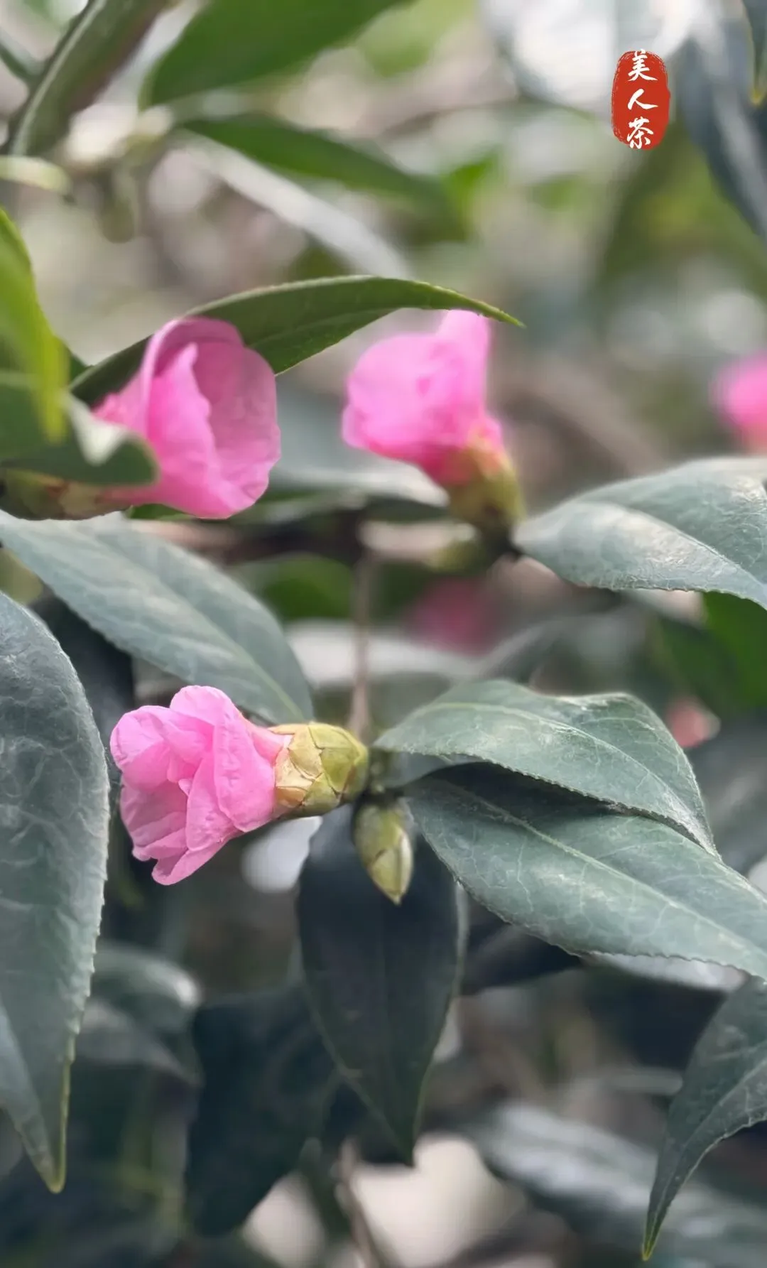 这棵山茶树与我们常见的山茶花虽同属,却不同种,因其花色似美人娇羞的脸颊,常被唤作“美人茶”。