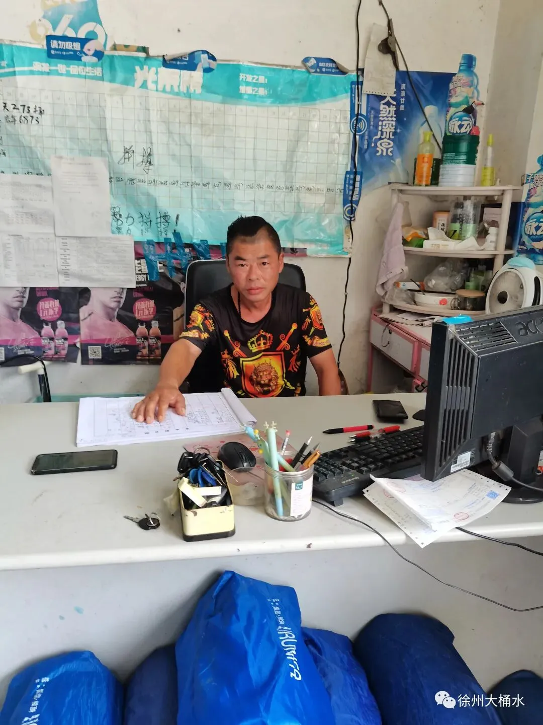 大海是安徽滁州市人,20多年前来到徐州,一开始做门窗和装修生意,是一个带着七八个工人的老板,生意还不错。几年后,不安分的大海看到别人做餐饮赚钱,投资了一个饭店,由于房租和装修投入太大,地段又没有选好,又不擅管理,没有多久亏了一二十万,没有办法,走到了桶装水这个行业。一直都是在润发水站。这一干就是10几年。