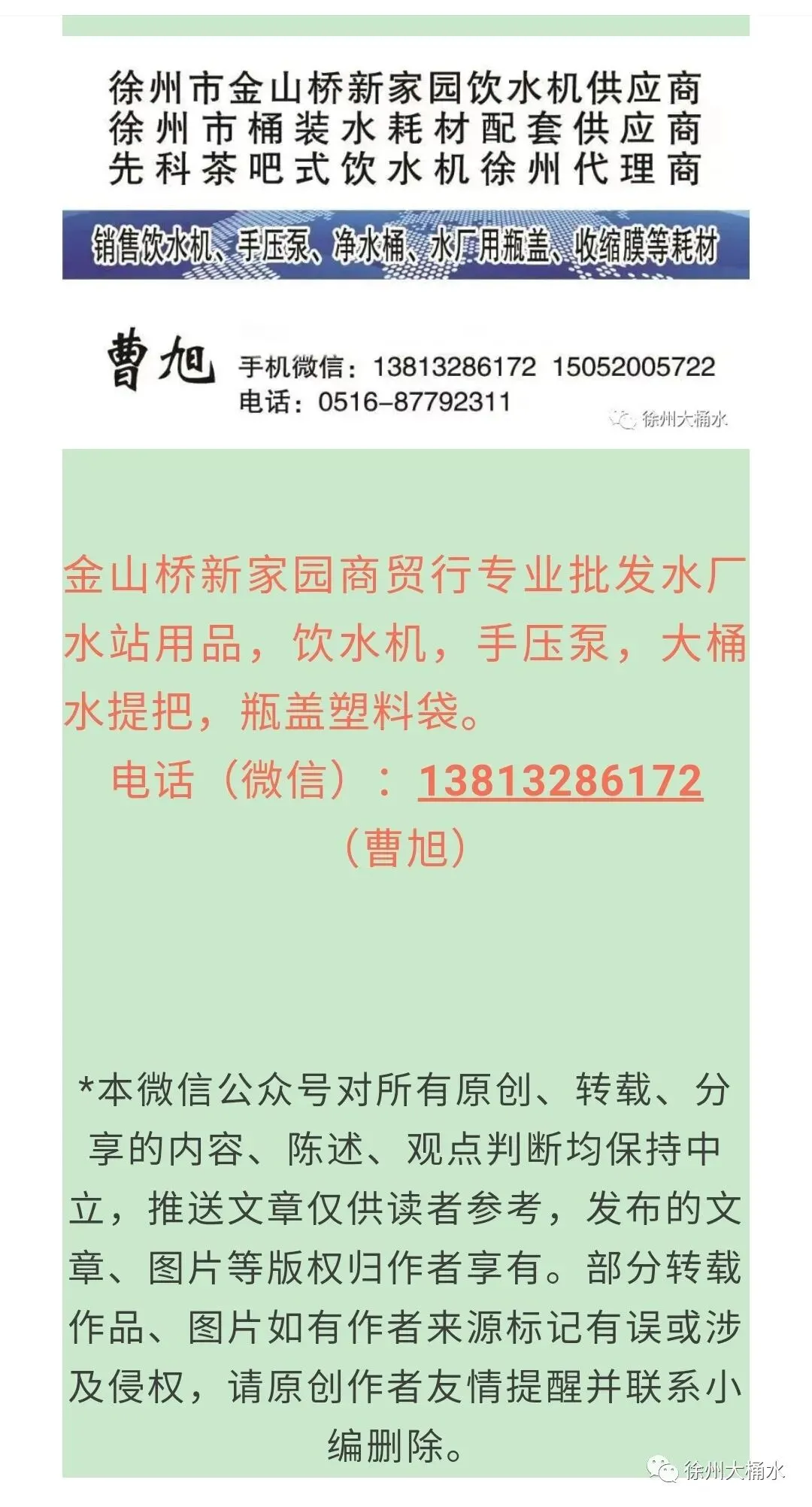 文字整理: 饮水机桶装水耗材供应商 曹旭