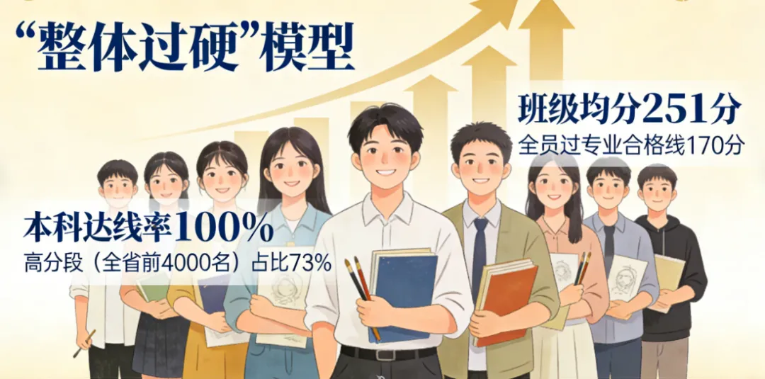 该校高三美术班以本科达线率100%和高分段(全省前4000名)占比73% 为核心亮点。