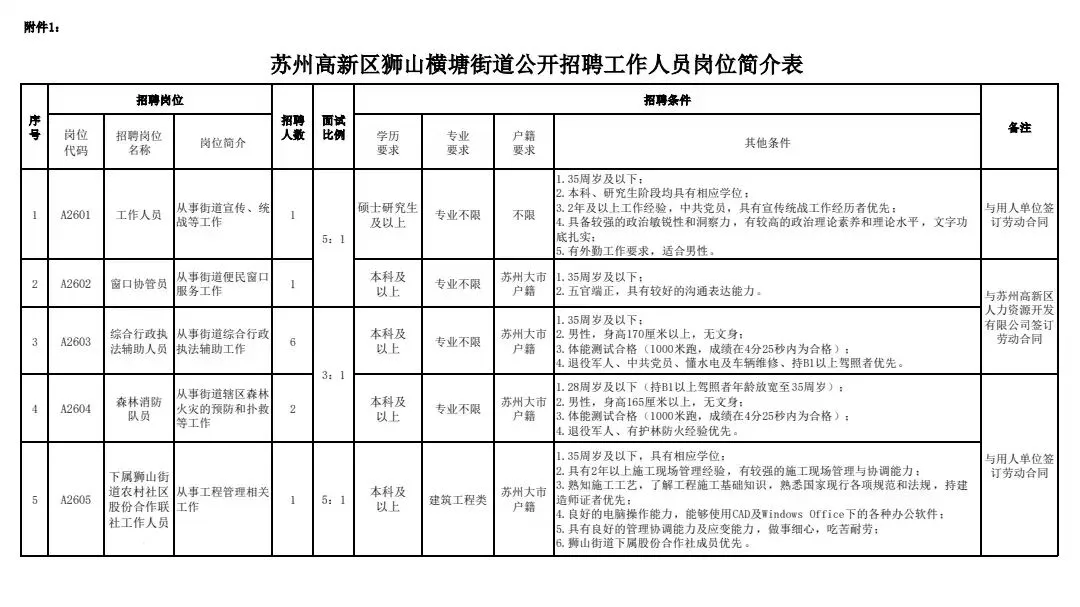 【苏就职-政企岗】招11名!苏州高新区狮山横塘街道工作人员招聘!