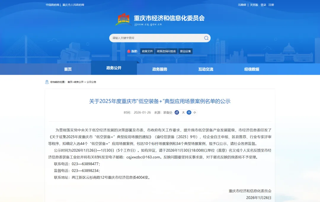 国新办举行新闻发布会,介绍2025年商务工作及运行情况。会上介绍,2025年,我国服务消费市场更加活跃。“跟着赛事去旅行”“跟着电影品美食”已成为新潮流,低空飞行、游轮游艇、旅游演艺等新业态新模式不断发展,为服务消费增长开辟了新空间。下一步,商务部将发挥促进服务消费发展工作协调机制作用,持续推动扩大服务消费、促进服务消费高质量发展,主要开展持续优化服务供给、培育服务消费新增长点、创新多元化消费场景等三个方面工作,加力推进消费新业态新模式新场景试点建设,充分发挥试点城市引领作用,促进商旅文体健融合发展,打造一批带动面广、显示度高的消费新场景。(1月26日国新网消息)江苏南京市政府印发《关于加快培育新质生产力推动高质量发展的若干政策(2026年版)》。《政策》明确,加力发展低空经济,对开通用于物流配送等低空飞行新航线的企业,给予最高500万元奖励。聚焦产业转型升级、社会综合治理、数字民生服务等重点,建设40个行业领域集成式场景,全年发布1000个应用场景机会、能力和案例清单。紧盯“人工智能+”、智能网联汽车、机器人、低空经济等新赛道,加快招引一批大体量制造业项目、总部和平台类服务业项目、外资项目,全年引进10亿元以上项目30个。(1月26日南京市政府网站消息)重庆市经信委公示2025年度重庆市“低空装备+”典型应用场景案例名单、重庆市低空产业链产品名录(2025年版)。其中,典型应用场景案例名单包括10个标杆场景案例和34个典型场景案例,涵盖低空飞行整机、低空飞行部件、安防反制装备、航行保障装备、检验检测装备、能源补给装备等领域。35家企业的相关产品入选产品名录(2025年版),包括低空飞行整机类6家、低空飞行部件类11家、安防反制装备类4家、航行保障装备类8家、检验检测装备类4家、能源补给装备类2家。(1月26日重庆市经信委网站消息)山西太原市低空产业发展有限公司成立,注册资本4000万元,经营范围包含通用航空服务,民用航空器驾驶员培训,民用航空器维修,民用航空维修人员培训,检验检测服务,城市配送运输服务(不含危险货物),智能无人飞行器制造,智能无人飞行器销售,人工智能公共数据平台,人工智能行业应用系统集成服务,人工智能应用软件开发等。股东信息显示,该公司由太原市财政局通过太原市高速铁路投资集团有限公司、太原市龙城发展投资集团有限公司间接全资持股。中国石化浙江公司杭州清泰门加能站无人机起降点正式通航,同步开通清泰门至申花、吴山、武林三条低空航线。据悉,首批开通的三条航线主要面向应急医疗物资配送,文件、电子产品等即时配送,拓展低空+文旅消费服务新场景。从传统能源站点到低空经济服务网络,中国石化浙江公司开启了“油气氢电服+低空经济”的综合服务模式。杭州石油分公司还与杭州低空产业公司达成专项合作,响应杭州“鼓励统筹利用交通基础设施用地发展低空经济”的政策导向,通过盘活加能站闲置场地改造起降点,将传统能源据点升级为集无人机起降、包裹分拣、能源补给于一体的智慧服务站点。江苏镇江市低空飞行服务平台上线,首批3条低空物流航线、8个空域获批。据悉,为统筹推进低空经济规范发展,镇江市遵循江苏全省“四个一”原则,即“一个标准、一个平台、一个规则、一张网”,依托江苏省低空飞行服务平台为全市低空飞行活动提供服务保障。作为承担低空飞行服务保障职能的单位,镇江市综合交通事业发展中心将提供空域及航线申请、飞行计划申报、运行监视等精准服务,为低空飞行活动提供安全、高效、便捷的保障支撑。(1月24日镇江市交通运输局消息)陕西省低空应用场景试点成果交流会暨低空医疗及应急一体化解决方案发布会在西安举行。会上,首个低空生物资源调度指挥大厅宣布投入试运行,低空医疗及应急物资配送调度“云帆”平台对外发布,西北医疗物资低空速配新型配套设施建设等四个项目完成现场签约。据悉,2025年1至11月,陕西全省航空产业链产值达503亿元,同比增长4.7%;无人机产业链提前完成“百亿提升”的年度目标,产值达到108亿元,同比增长7.2%。(1月26日西安发布消息)翼弦是指机翼沿机身方向的弦长。除了矩形机翼外,机翼不同地方的翼弦是不一样的,有翼根弦长b₀、翼尖弦长b₁。