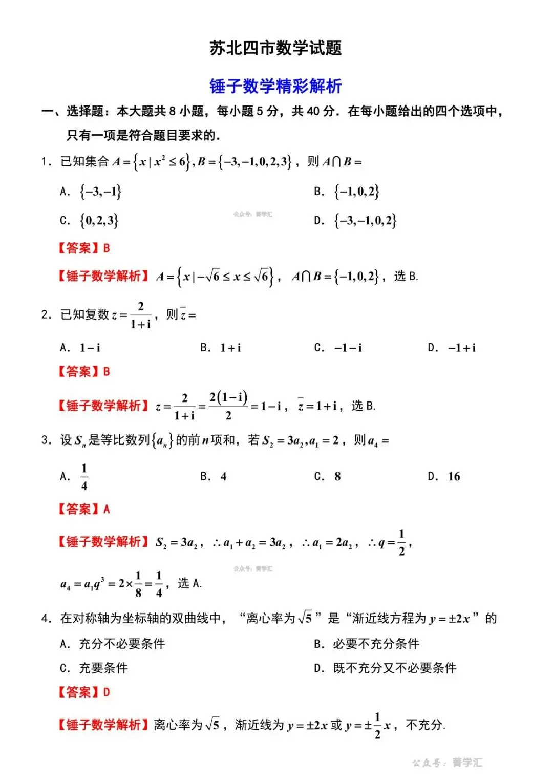 江苏省徐州、淮安、连云港、宿迁四市2026 届高三第一次模拟联考(苏北四市一模)试题及答案