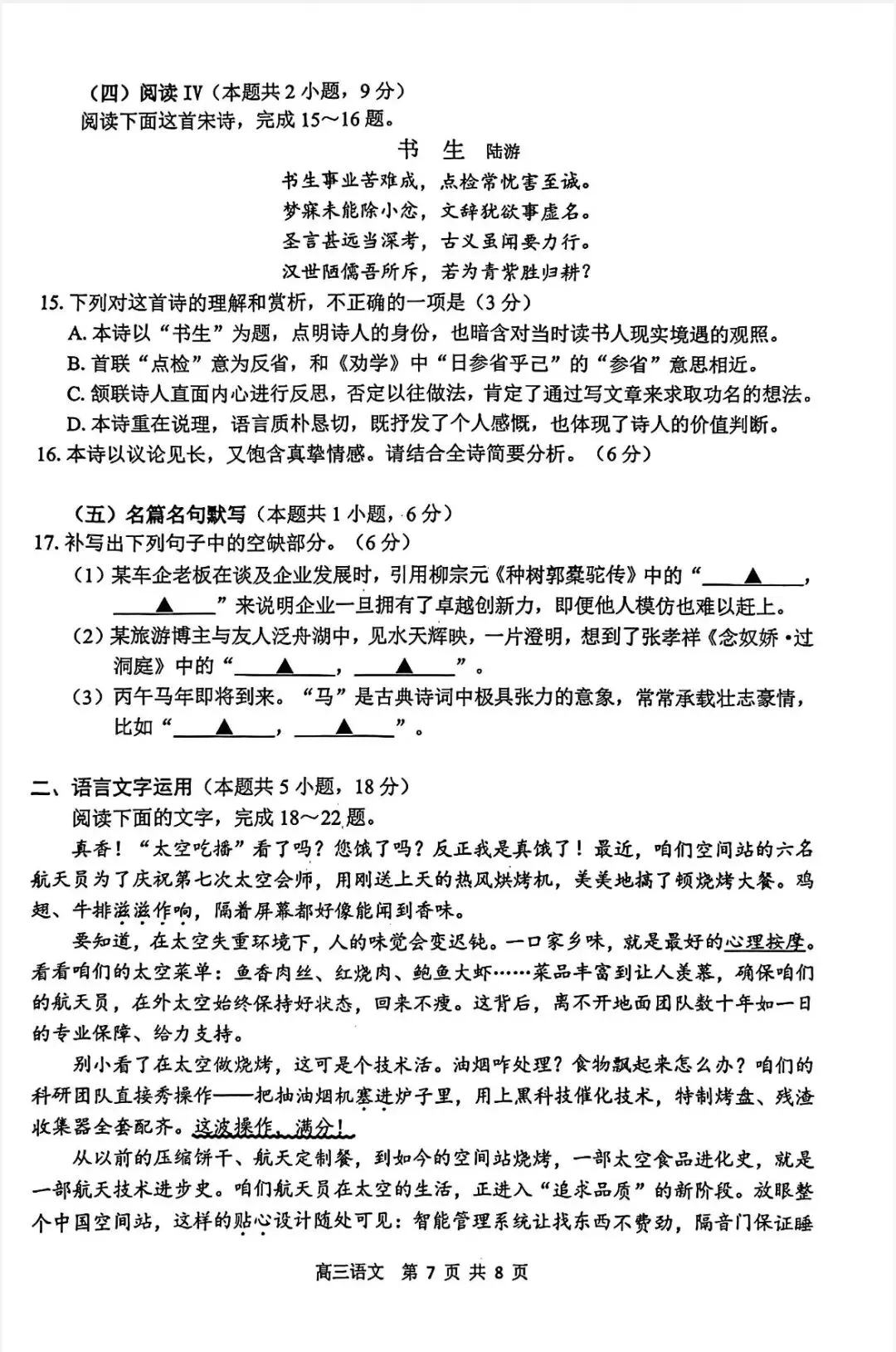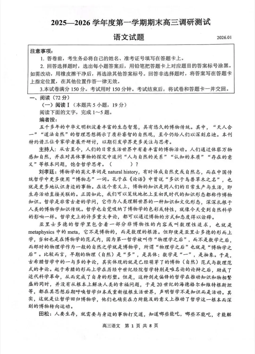 >江苏省徐州、淮安、连云港、宿迁四市2026 届高三第一次模拟联考(苏北四市一模)语文试题及答案