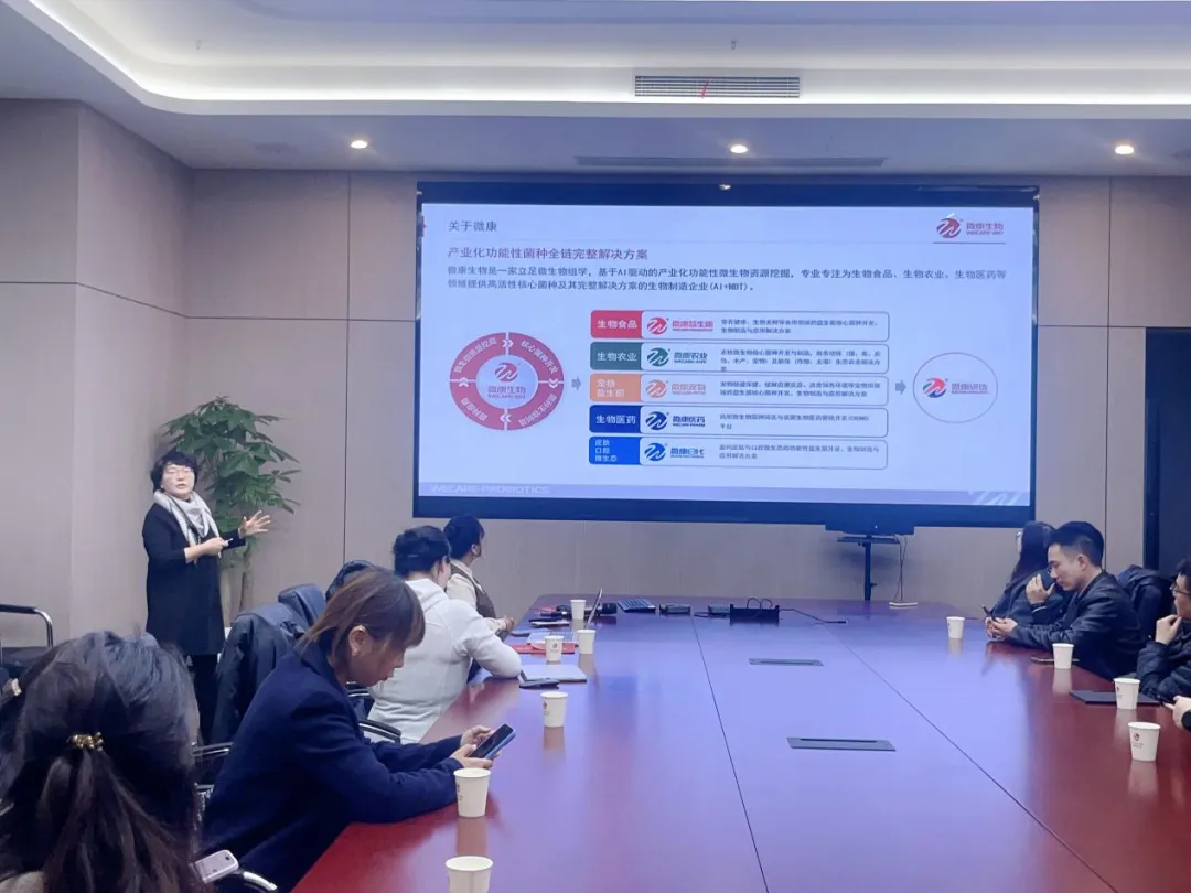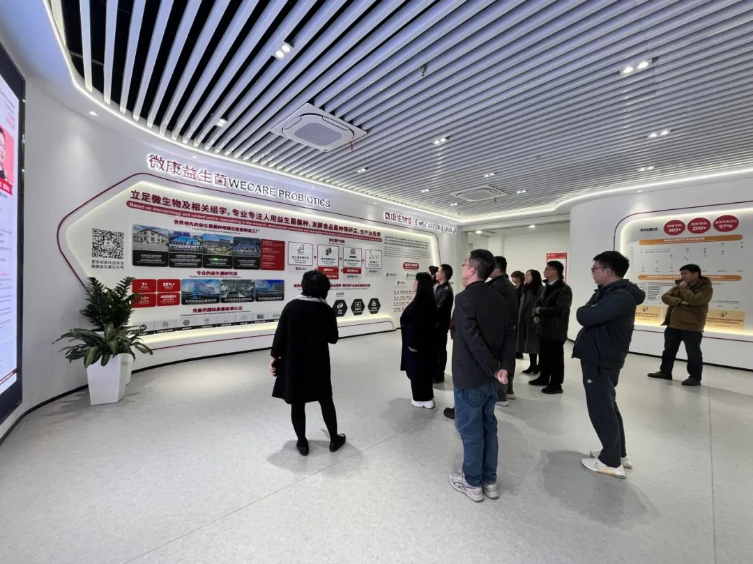 微康益生菌(苏州)有限公司投资人赵金明为大家详细介绍了企业的发展历程、核心业务与战略布局。微康益生菌(苏州)股份有限公司是一家立足微生物组学、以AI 技术驱动的生物制造企业,专注于为生物食品、生物农业及生物医药领域,提供功能性菌种全链解决方案。企业由方曙光博士创立,汇聚了包括邓子新、陈卫等多位国内外院士在内的顶尖专家团队,研发实力雄厚。凭借扎实的研发积淀、先进的生产工艺与严格的质量管控体系,微康益生菌已斩获 CNAS 实验室认证、FSSC22000、GRAS 等全球权威资质,与拜耳、伊利、蒙牛等众多国内外知名企业建立了深度合作关系,行业市场地位突出,始终致力于以微生态科技,助力人类健康与社会可持续发展。在微康益生菌的企业展厅,企业家们通过生动的图文展示、技术讲解和场景化体验,系统了解了微康益生菌的发展历程、核心技术与产业布局。作为国内益生菌领域的领军企业,微康益生菌以“产业化功能性菌种全链完整解决方案” 为核心,构建了从菌种挖掘、研发到规模化生产的全链条能力,其产品广泛应用于生物食品、生物农业、生物医药等多个领域,展现出强劲的技术实力与市场竞争力。