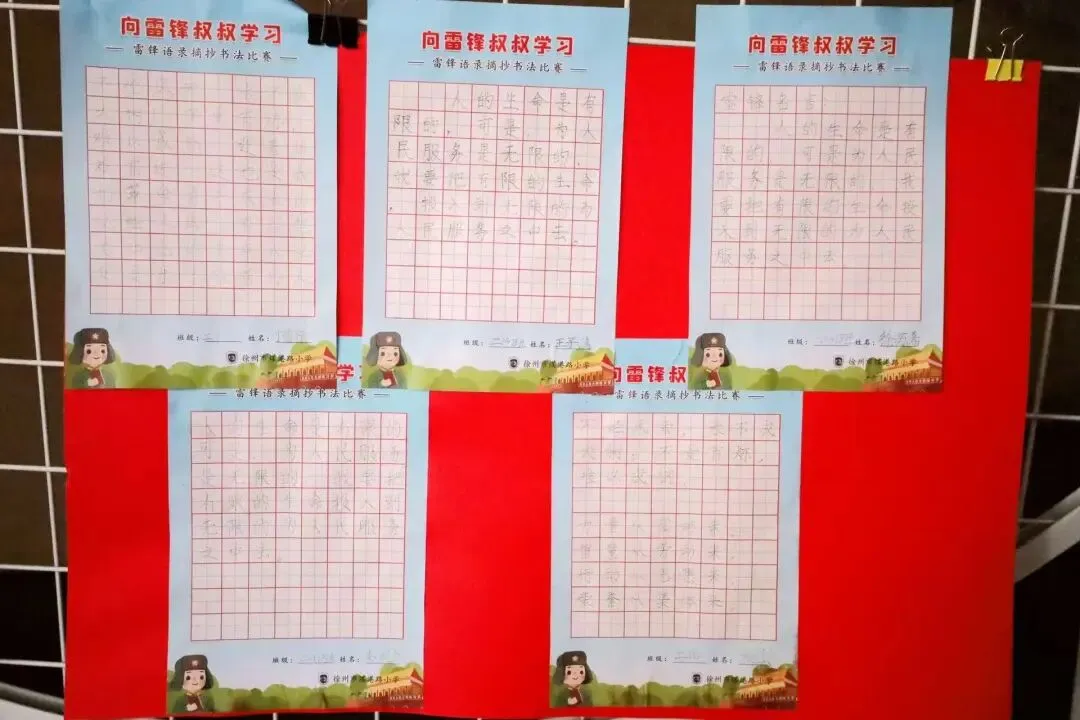 学校组织全校学生开展了“雷锋语录书法比赛”,孩子们用稚嫩的笔触,书写着雷锋叔叔的经典语录。每一笔、每一划都饱含着对雷锋精神的理解与敬仰。经过班级初选,每班的优秀作品脱颖而出,这些作品不仅展示了孩子们的书法才华,更传递了雷锋精神的内涵。学校将这些优秀作品展示在校园文化长廊,让全体师生在欣赏书法作品的同时,感受雷锋精神的力量。