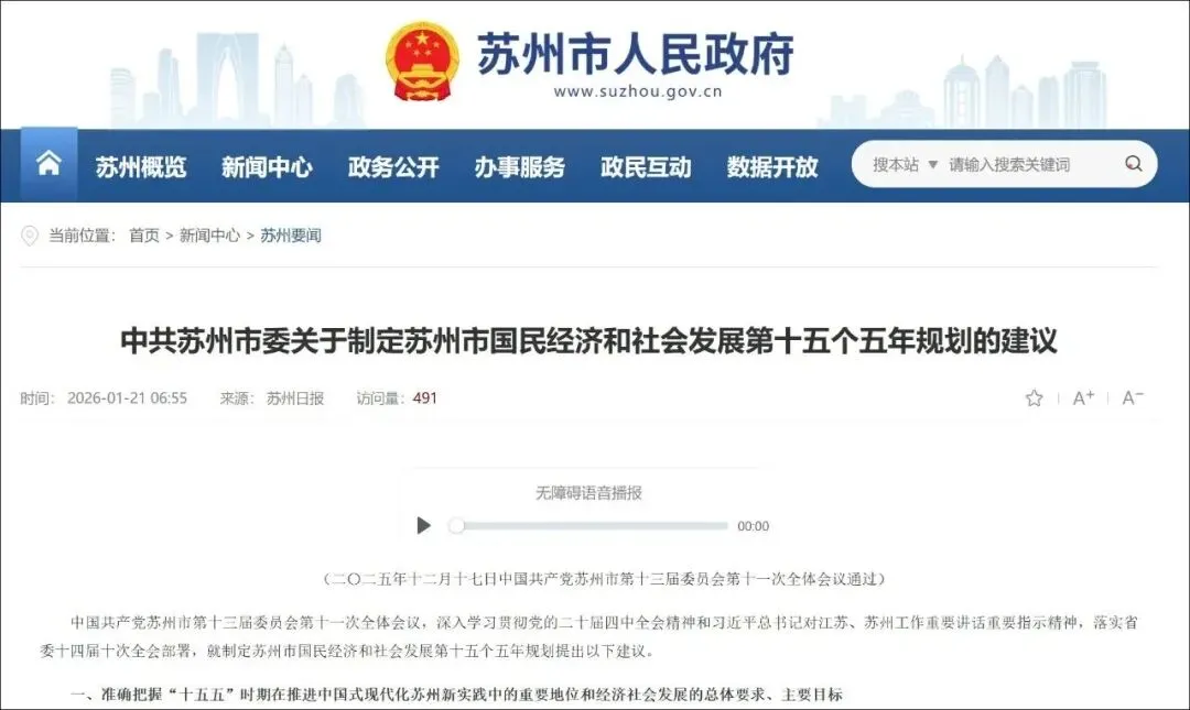 近日,苏州公布了制定苏州市国民经济和社会发展第十五个五年规划的建议。这项既定工作,为什么吸引了不小的关注呢?