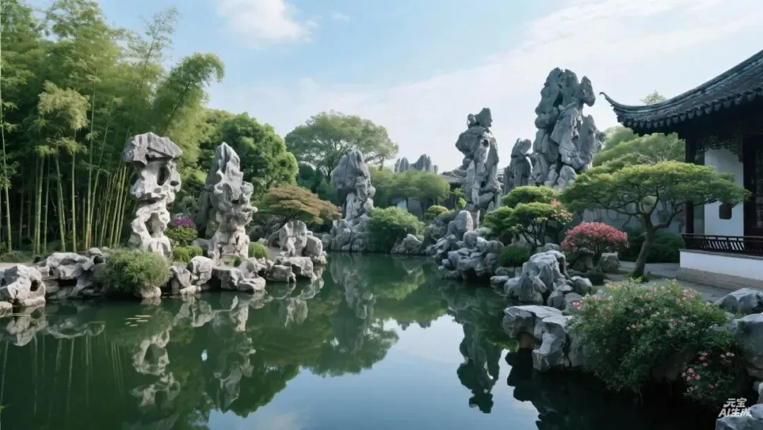 苏州园林里都有假山和池沼。假山的堆叠可以说是一项艺术而不仅是技术。或者是重峦叠嶂,或者是几座小山配合着竹子花木,全在乎设计者和匠师们生平多阅历,胸中有丘壑,才能使游览者远望的时候仿佛观赏宋元工笔云山或者倪云林的小品,攀登的时候忘却苏州城市,只觉得在山间。