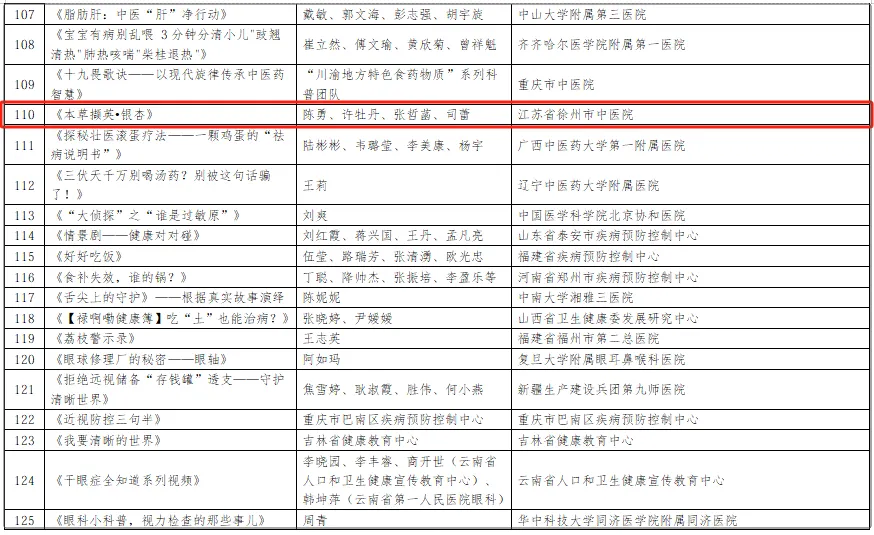 徐州市中医院选送的科普视频——《本草撷英●银杏》获评为视频类优秀作品。