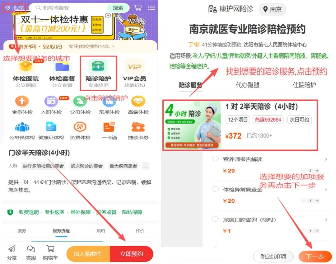 康护网陪诊预约步骤