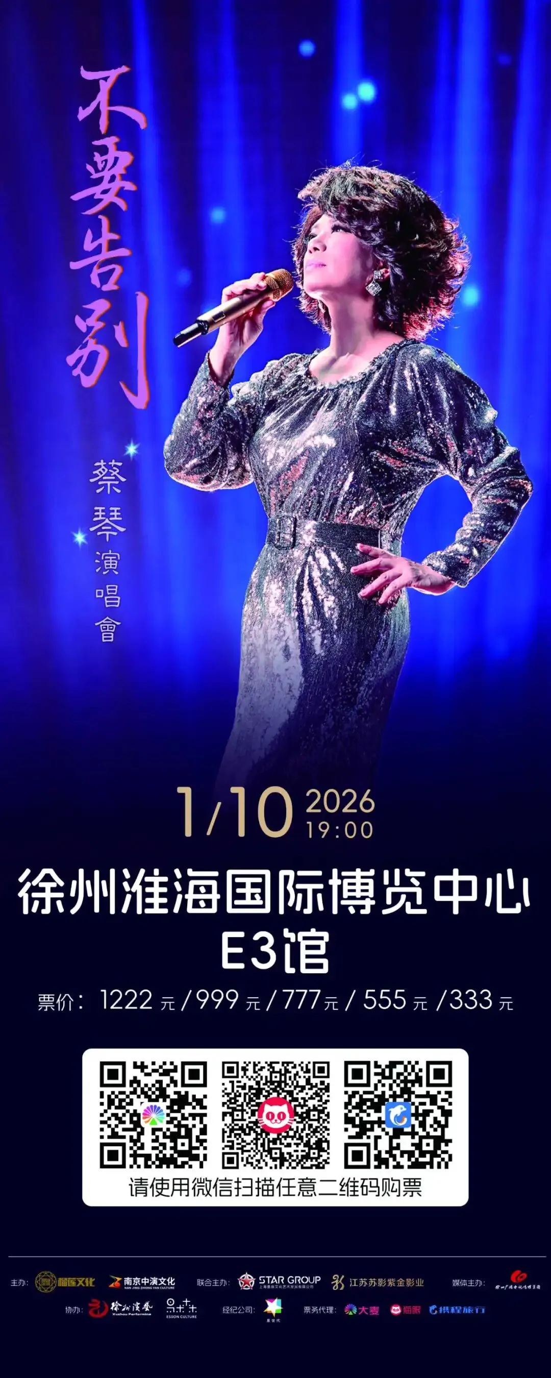 2026年1月10日,蔡琴「不要告别」巡回演唱会的最终章,在徐州淮海国际会展中心E3馆奏响——让我们在“被遗忘的时光”里,与过去的自己温柔相拥;在“恰似你的温柔”中,把这一年的悲欢悉数珍藏。