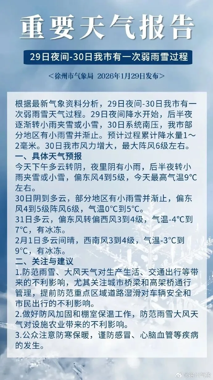 徐州降雪最新消息!刚刚,重要天气报告发布