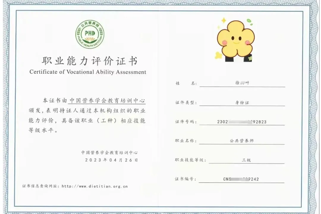 钢印盖章、颁证单位名称、查询地址、证书编号、考生照片、姓名、证件类型、证件号码、职业名称、职业技能等级、证书编号