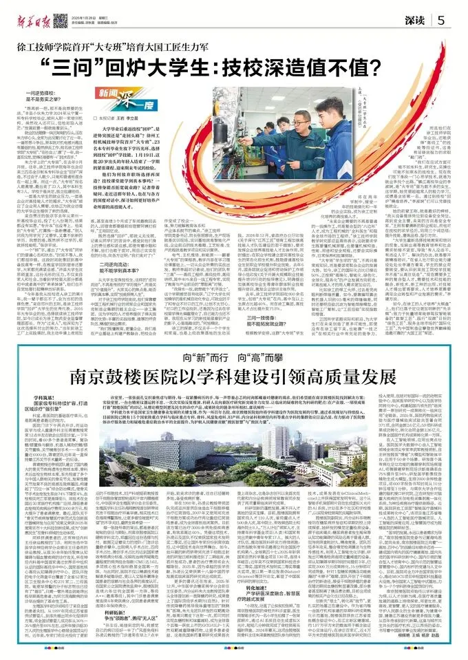 诊室里,一张张面孔交织着焦虑与期待,每一双紧攥病历的手、每一声带着忐忑的问询都藏着对健康的渴求,他们希望能在南京鼓楼医院找到解决方案;实验室里,一台台精密仪器运转不息,一次次实验反复推演,科研人员向着医疗研究新突破全力攻坚,让临床的疑难转化为科研的靶点;在产业端,一项项成果打着“鼓楼医院”的印记,从理论模型到惠及民生的诊疗产品,成果转化的链条环环相扣,喜讯频传……学科能力水平是国家卫生健康事业发展的关键支撑,作为一所百年名院,南京鼓楼医院始终将学科建设作为医院发展的引擎,通过系统规划与持续投入,目前医院已拥有15个国家级重点学科与临床重点专科,骨科、风湿免疫科、妇产科、内分泌科和神经内科等重点学科的集群效应日益凸显,有力驱动了医院整体诊疗服务能力和疑难危重症救治水平的全面提升,为护航人民健康贡献“鼓医智慧”与“鼓医力量”。科室,是医院的基础医疗单元,也是距离患者最近的地方。医院门诊下午两点开诊,而运动医学与成人重建外科主任蒋青教授常常12点半左右就会出现在诊室,一下午的时间,看60多个患者是常事。复杂髋/膝置换与翻修、机器人辅助的髋/膝关节置换、关节镜微创手术……年手术量近6000台,蒋青团队近年来一直保持着江苏关节手术量第一的纪录。蒋青教授还带领团队建立了国内最大的骨关节疾病遗传生物样本库、骨科术后血栓生物样本库,率先报道了多个与中国人群相关的骨关节炎、发育性髋关节发育不良的易感及致病基因,构建起了“四位一体”综合防治模式,使骨关节手术血栓发生率由74%下降至4%,血栓相关死亡率更是降至0。该技术在全国近30家医疗机构推广应用,降低患者血栓相关疾病治疗费用2000余万元,极大提升了患者满意度。最近,团队关于“骨关节疾病智慧医疗新范式及创新医疗器械研发与应用”成果又荣获2025年度南京市十大科技创新成果,成为“创新惠民生”在骨科领域的生动体现。同样挤满患者的,还有神经内科主任徐运教授的门诊。刚刚当选中华医学会神经病学分会候任主任委员的徐运教授,从医30余年始终聚焦认知障碍与脑血管疾病的诊疗攻关,所在神经内科是中国首家通过世界卒中组织认证的国际高级卒中中心、国家首批核心高级认知障碍诊疗中心。团队开发的电子化筛查平台覆盖了全省52家社区卫生服务中心和231家二、三级医院。能更早预警的分子标志物也已经有了“眉目”,只需一管外周血就能筛出极早期高危患者,为阿尔茨海默病的早诊早治提供了革命性工具。生殖医学科的诊间吸引了来自全国的患者夫妇。从1997年完成江苏省首例试管婴儿,到率先提出同步化促排卵方案,将全国试管婴儿成功率从30%—35%提升至60%左右,这所年接诊超20万人次的生殖医学中心稳居全国顶尖行列。近年来,专家们将目光投向了更前沿的干细胞技术,妇产科胡娅莉教授首创干细胞修复宫腔粘连和子宫内膜瘢痕化,中华医学会生殖医学分会主任委员、生殖医学科主任孙海翔教授首创脐带间充质干细胞治疗卵巢早衰,相关技术已在海南博鳌落地,让更多曾经被宣判“无望”的不孕夫妇,重燃生育希望……每一张挂号单的背后,都是患者沉甸甸的信任与期盼,而南京鼓楼医院以硬核学科实力,郑重回应这份选择与托付。数据见证着实力的进阶:门急诊总量稳步攀升,出院病人手术占比、四级手术占比、微创手术占比均达到国家绩效考核满分标准,反映收治病例疑难危重程度的病例组合指数(CMI)达1.62,多项核心技术指标稳居全国第一方阵。与此同时,医院不仅以精湛技术破解诸多疑难杂症,更以人文服务赢得全国患者的信赖与社会各界的高度认可,在国家公立医院绩效监测中,鼓楼医院连续六年位列全国第一方阵,等级A++(最高等级),其中门诊患者满意度连续4年荣获满分,住院患者满意度连续6年保持满分。“孙主任,能挂到您的号,我感觉自己的病已经好一半了!”风湿免疫科孙凌云教授的门诊通常在早上7点半开始,前来求诊的患者,往往已经辗转多地,备受疾病折磨。早在1998年,孙凌云教授带领团队完成亚洲首例自体造血干细胞移植治疗红斑狼疮,2007年又使用间充质干细胞方案成功治疗两位重症红斑狼疮患者,成为全球首批临床案例。目前该方案已治疗3000余例免疫疾病患者,有效率高达60%。凭借这项技术,孙凌云及团队不仅荣获国家技术发明奖二等奖,还让国外专家纷纷到南京取经,让中国技术走向世界舞台。如今,他开展的新药脐带间充质干细胞注射液的研发已顺利推进到了二期临床,倘若开发成功,患者的治疗费用将会大幅降低。2025年,因为卓越的医学贡献,孙凌云又荣获第十八届中国药学发展奖临床医药研究突出成就奖。更多的喜讯还在传来。2025年12月,中华医学会糖尿病学分会前任主任委员、内分泌科朱大龙教授团队牵头全球首创新一类降糖药研究,成果登上了国际顶级学术期刊《自然》。针对传统降糖药易导致体重增加的“跷跷板”困境,朱大龙团队研发的双靶激动剂,每周只需皮下注射一次,即可同时实现血糖控制和体重减轻,成为全球首个且唯一获批上市的GCG/GLP-1天然双靶减重降糖药物,让更多患者受益。这是我国新药Ⅲ期研究成果首次登上该杂志,也是杂志创刊以来首次在代谢和内分泌疾病领域背靠背同步发表了两项Ⅲ期临床研究成果。科研创新的